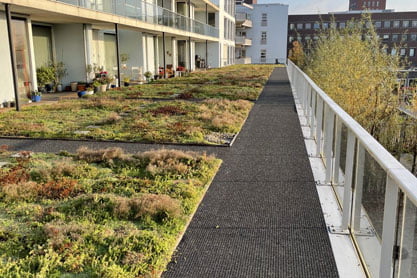 Daarnaast bieden wij ook de antislip Gravelmat aan. Deze mat heeft een open structuur, wat water en vuil doorlaat, en voldoet aan de R13-antislipnorm. Dat maakt de mat geschikt voor onder andere galerijen, vlonders en buitentrappen.